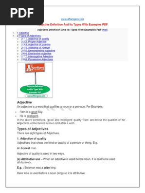 Adjective Definition And Its Types With Examples Pdf Adjective Biography Definition For English