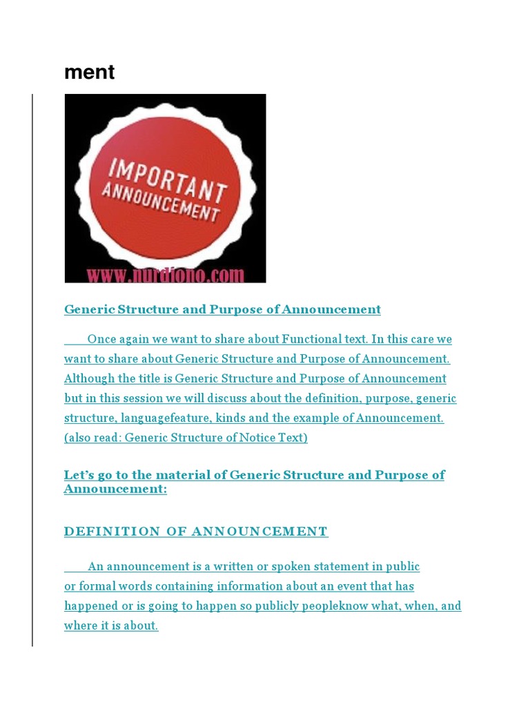 Announcement Text Definition Purpose Generic Structure, Indeed recently has been hunted by consumers around us, perhaps one of you personally. People now are accustomed to using the internet in gadgets to view video and image information for inspiration, and according to the name of this article I will discuss about
