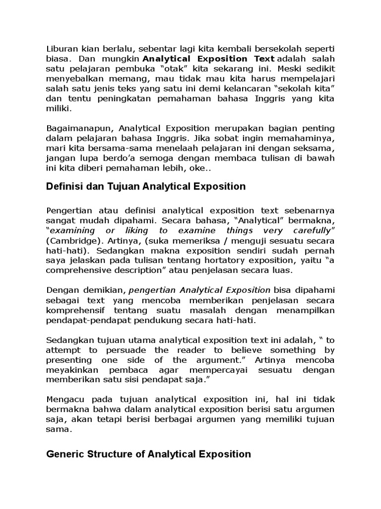 Contoh Analytical Exposition Text Beserta Generic Structure Curriculum Vitae Meaning Definition