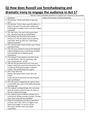 Blood Brothers Dramatic Irony And Foreshadowing In Act 1 Definition Drama Japonais