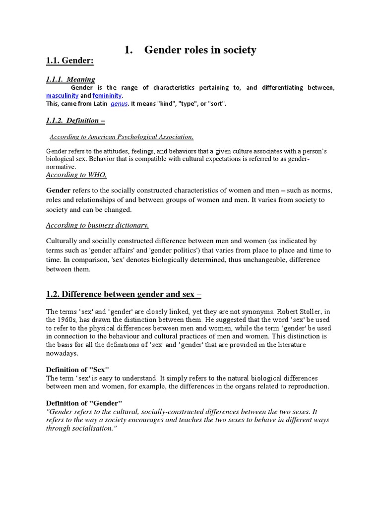 Unit 1 Gender Role Femininity Definition Public Announcement