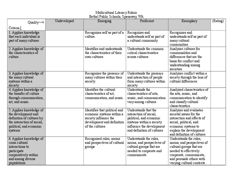 Gen Ed Multicultural Literacy Rubric 011006 Doc Communication Brand Definition By
