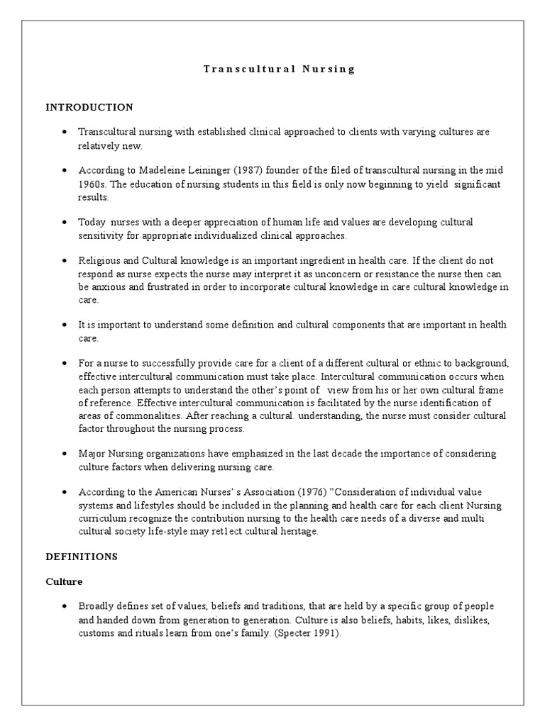 Transcultural Nursing Health Care Public Health The Definition Descriptive Text