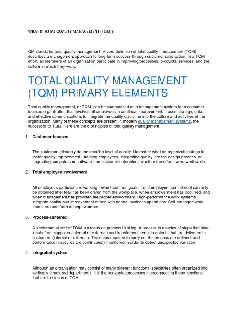 Total Quality Management Tqm Primary Elements Quality Definition Degree Of Comparison