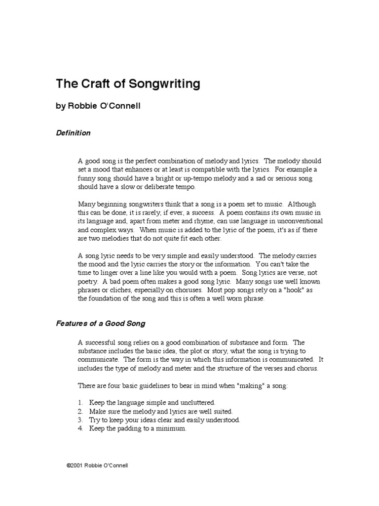 Craft Of Song Writing Refrain Poetry Justification Definition Drama
