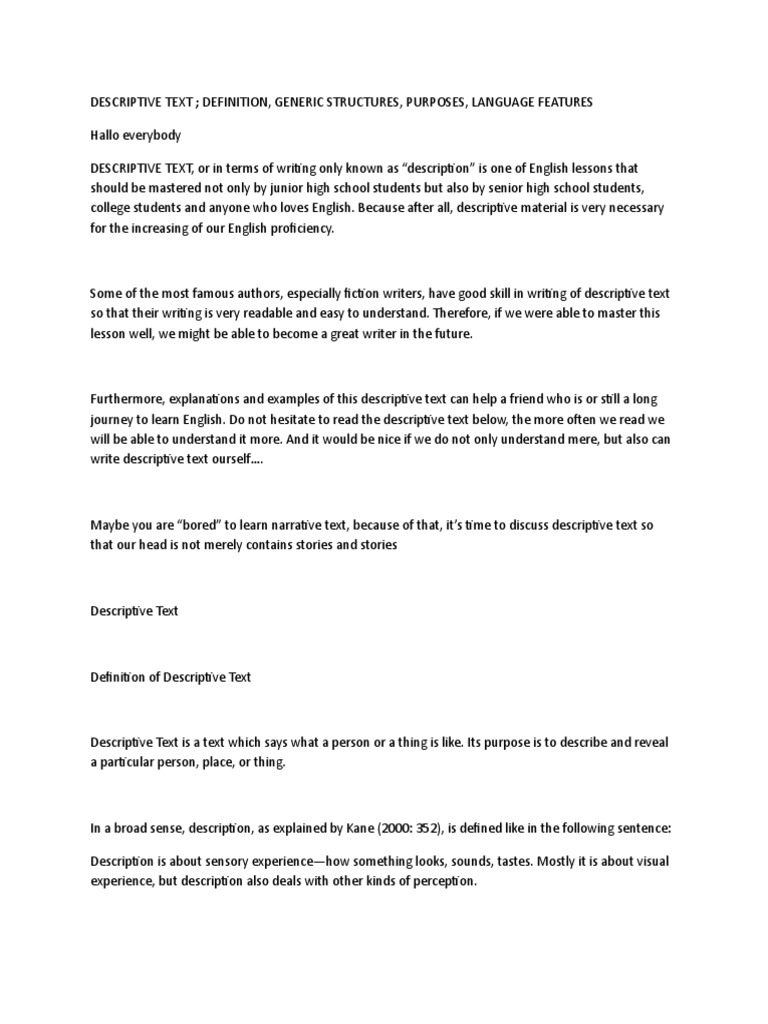 Descriptive Text Definition Purpose Generic Structure Language Features, Indeed recently has been hunted by consumers around us, perhaps one of you personally. People now are accustomed to using the internet in gadgets to view video and image information for inspiration, and according to the name of this article I will discuss about