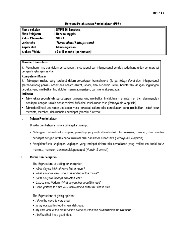 Rpp Kelas Xi Speaking Giving And Asking Opinion Cause And Effect Research Definition