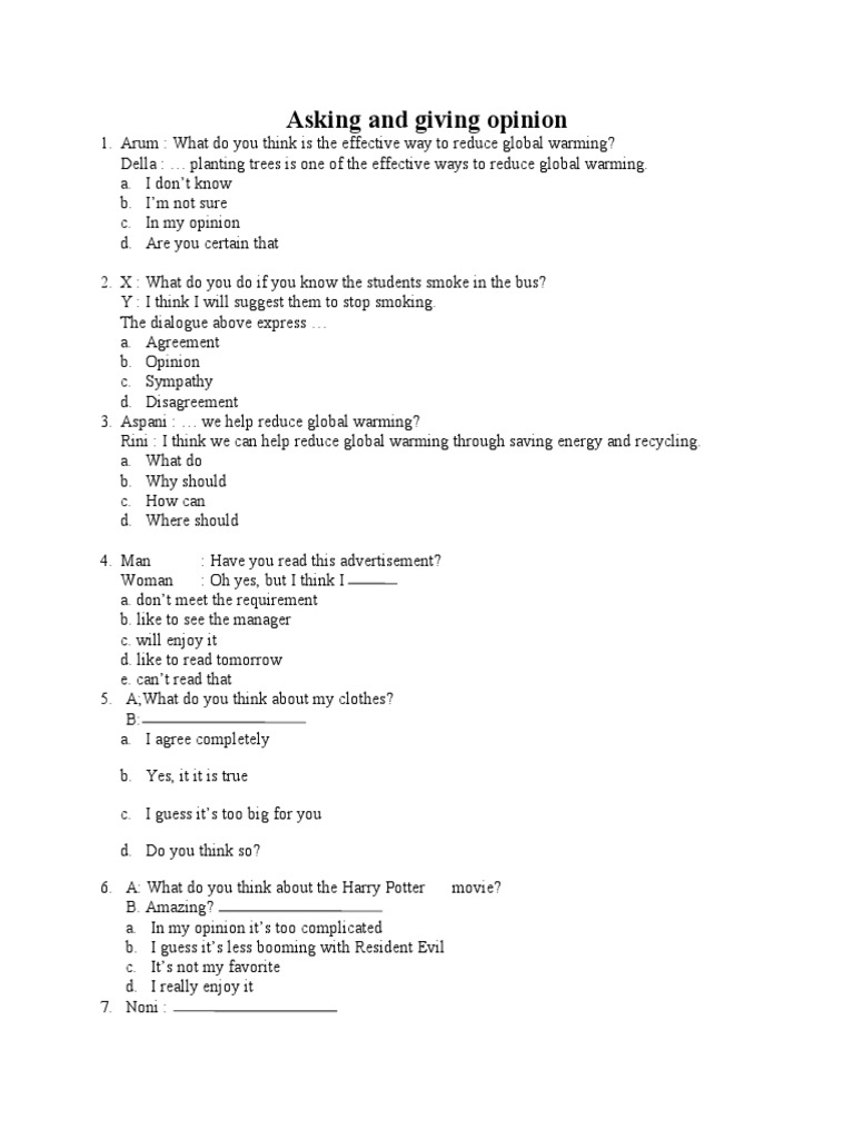 Long Dialogue Asking And Giving Opinion, Indeed recently has been hunted by consumers around us, perhaps one of you personally. People now are accustomed to using the internet in gadgets to view video and image information for inspiration, and according to the name of this article I will discuss about