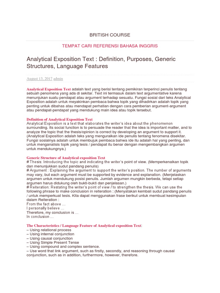 Analytical Exposition Text Definition Purposes Generic Structures Definition Of Caption Writing