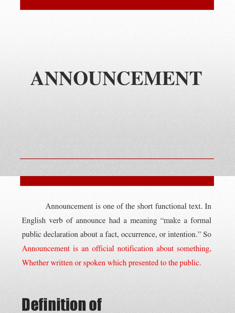 Short Definition For Announcement, Indeed recently has been hunted by consumers around us, perhaps one of you personally. People now are accustomed to using the internet in gadgets to view video and image information for inspiration, and according to the name of this article I will discuss about