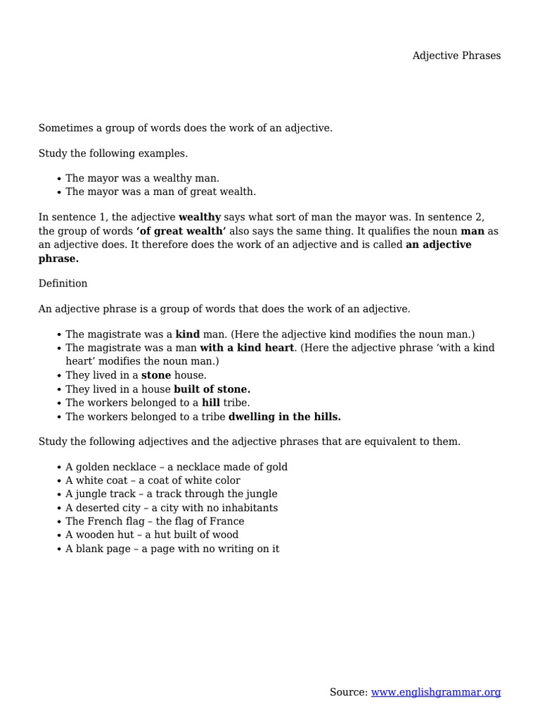 Adjective Phrases Definition Song Hd