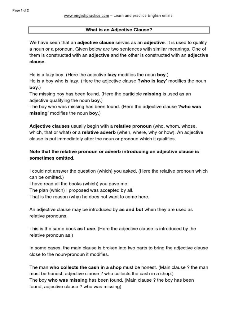 What Is An Adjective Clause Page 1 Of 2 Adjective Languages Definition Current Curriculum Vitae