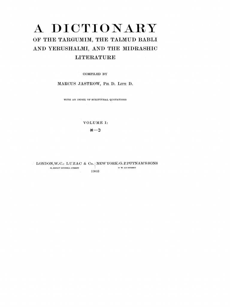 Marcus Jastrow A Dictionary Of The Targumim Talmud Midrash Stage Directions Drama Definition